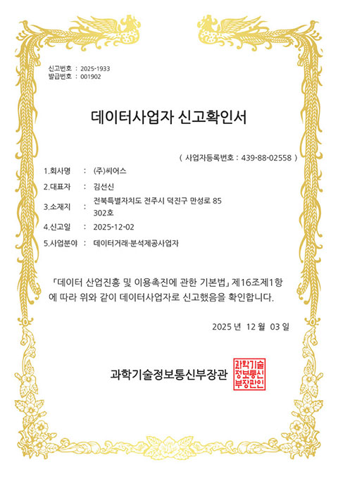 데이터사업자 신고확인서