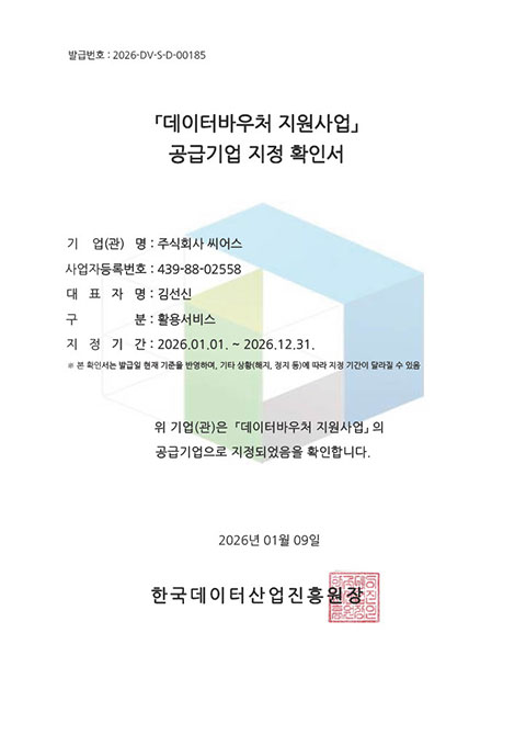 데이터바우처 지원사업 공급기업 지정 확인서